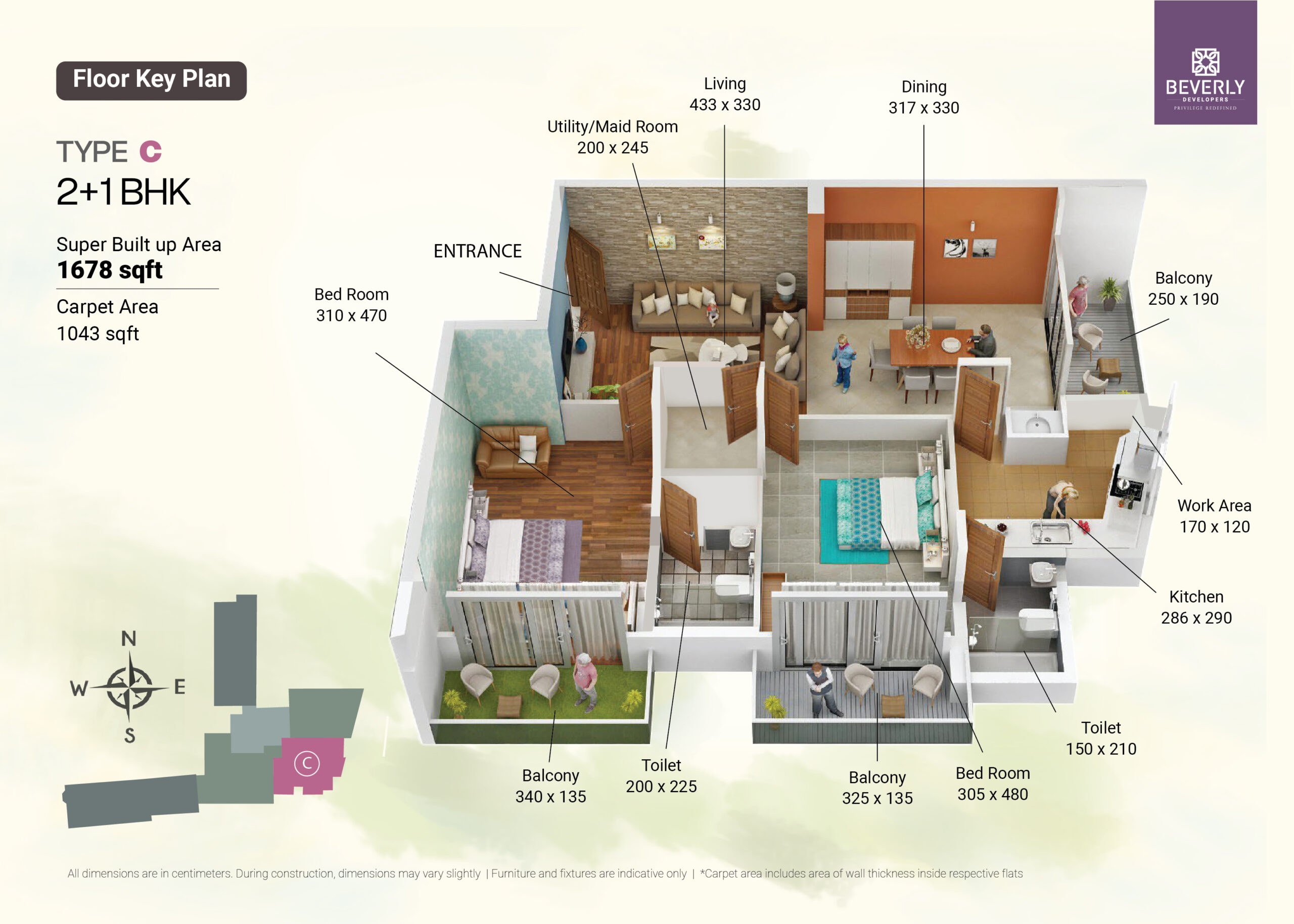 A compact and efficient 2 bedroom layout, ideal for small families or as a premium investment property.