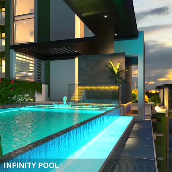 An entire floor with an Infinity Pool, Gazebo, BBQ, Gym, Yoga Deck, & More.